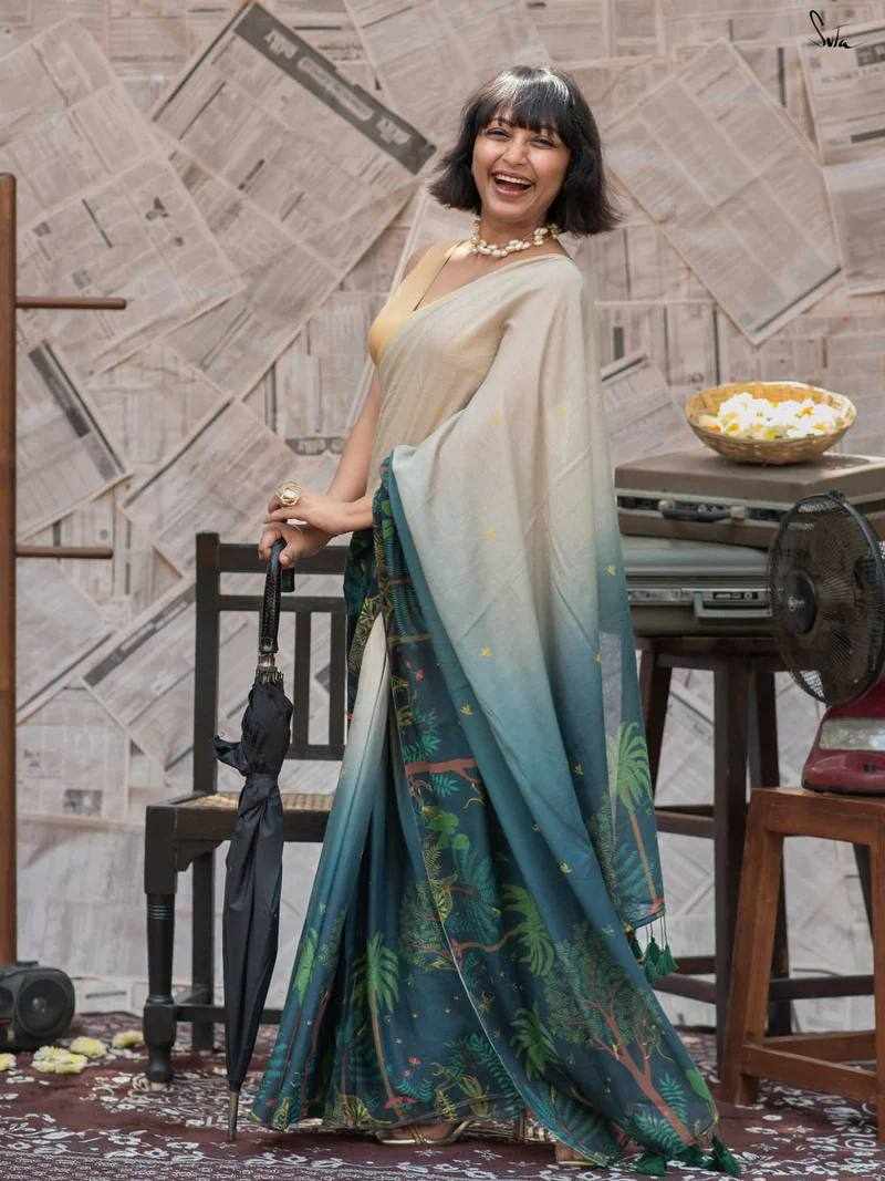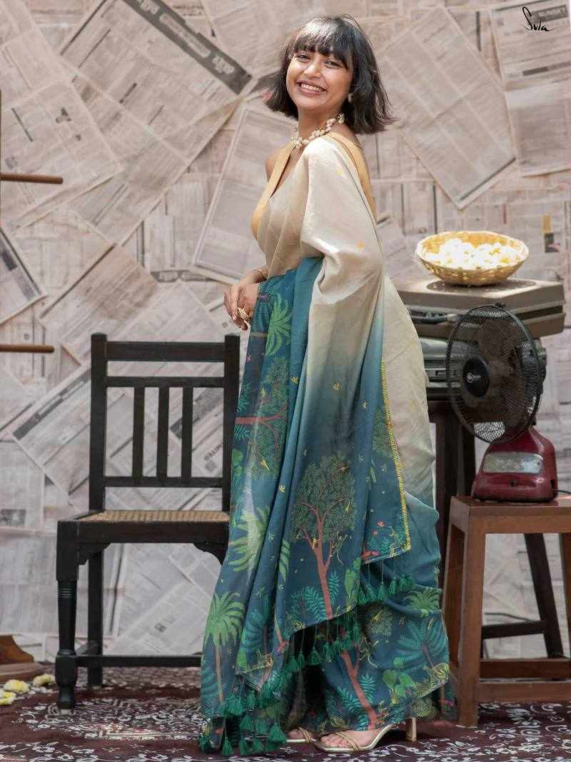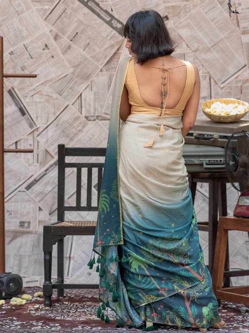 Saree Fabric: Soft Linen Cotton with beautiful digital print and elegant handmade cotton tassels