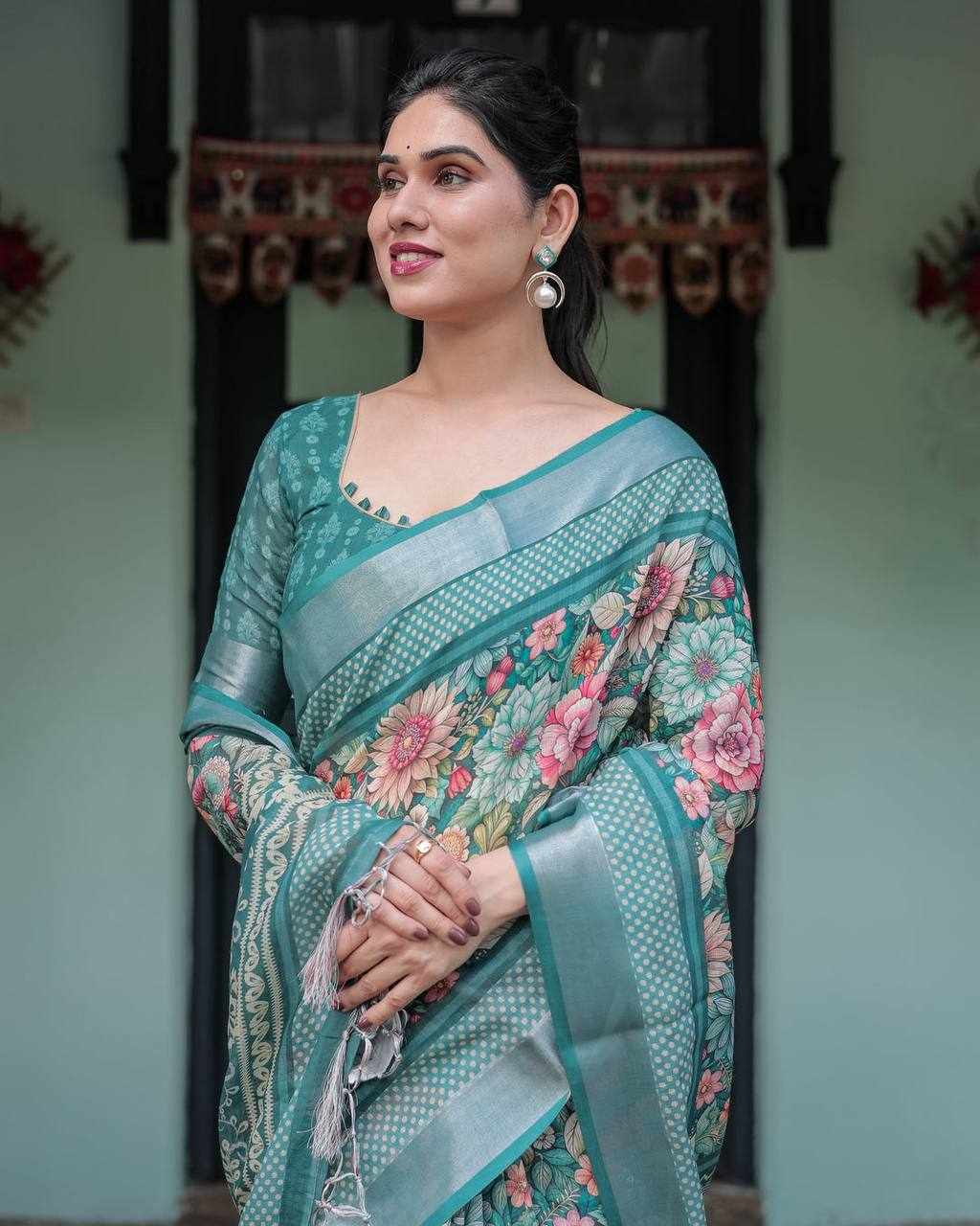 Silver Weaving Patta Linen Cotton Saree