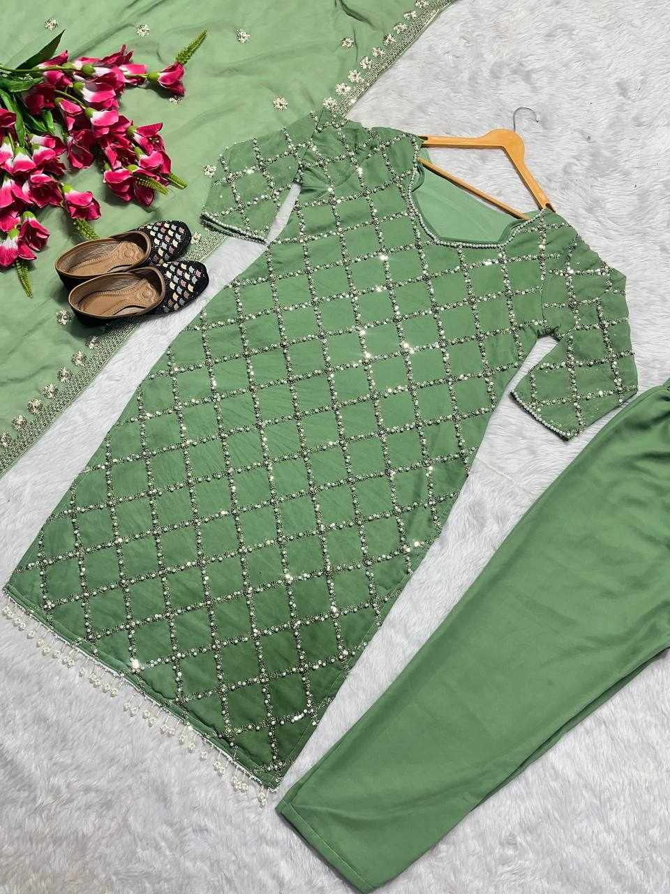 MF 409 New Fancy Embroidered Green Dress