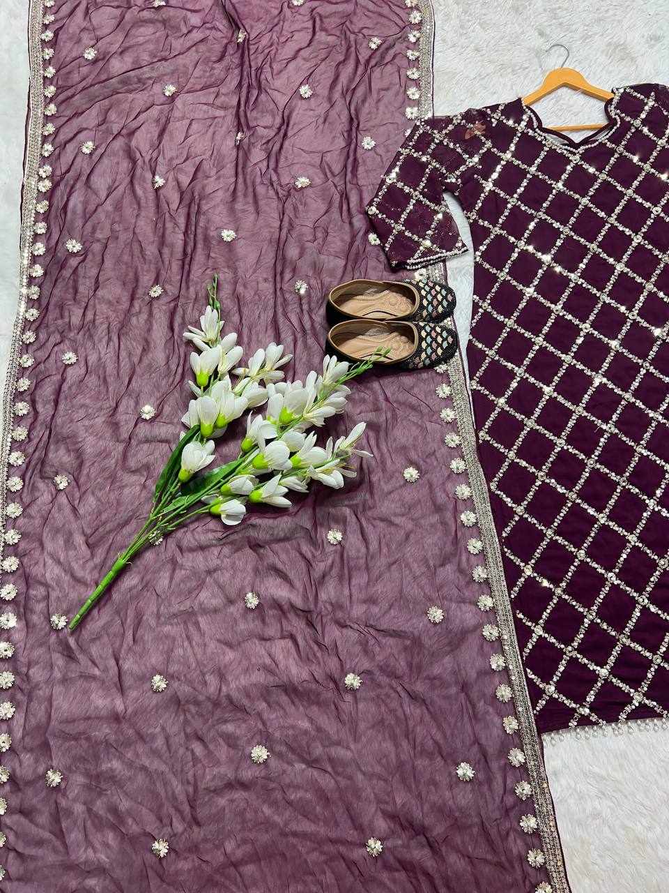 MF 409 New Fancy Embroidered Wine color Dress