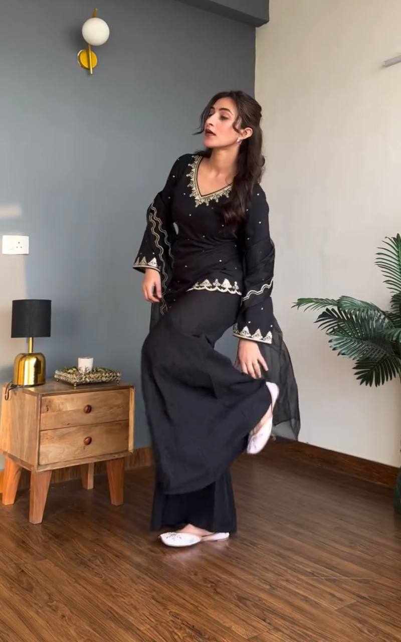 Top Fabric :- Heavy Natural Crepe Silk with Heavy 5mm Embroidery Sequence Work
