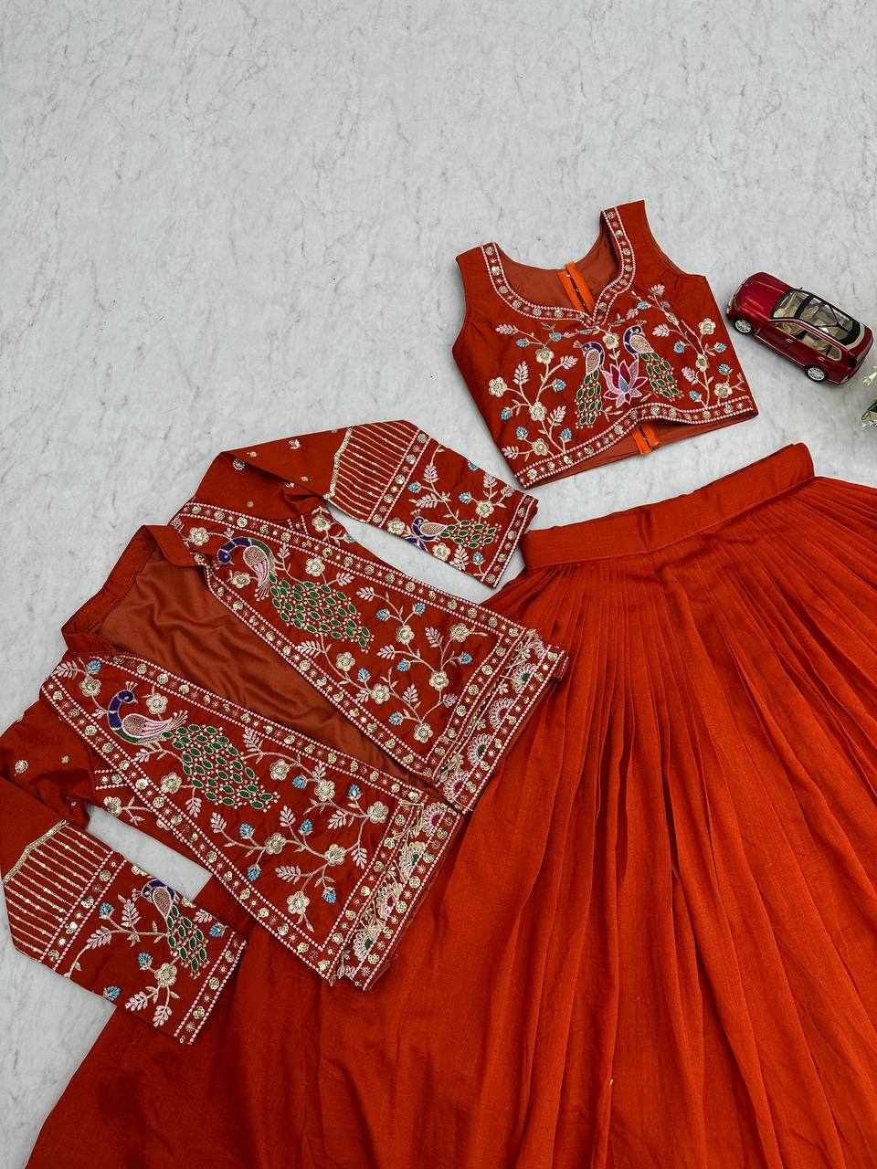 PC 559 New Modern Party Wear Red Lehnga With Jacket has been successfully added to your cart .