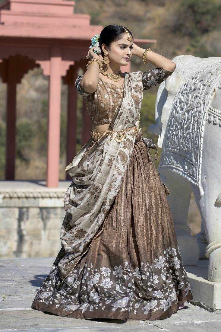 | Name : | PIYU 27-1 Silk Digital print Brown Lehnga |