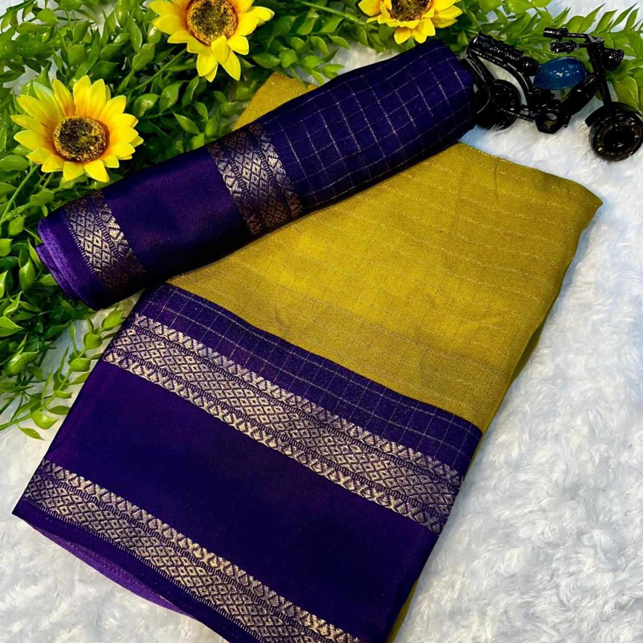 Saree Fabric : Jacquard border with mill printed sarees design