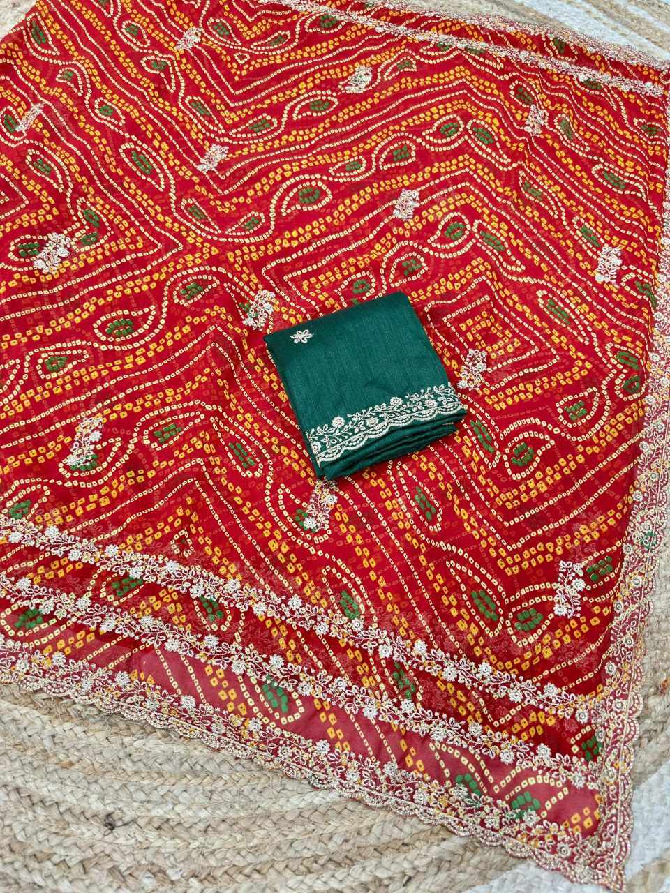 • Fabric: Premium Georgette with Mill Printed Designer Pattern