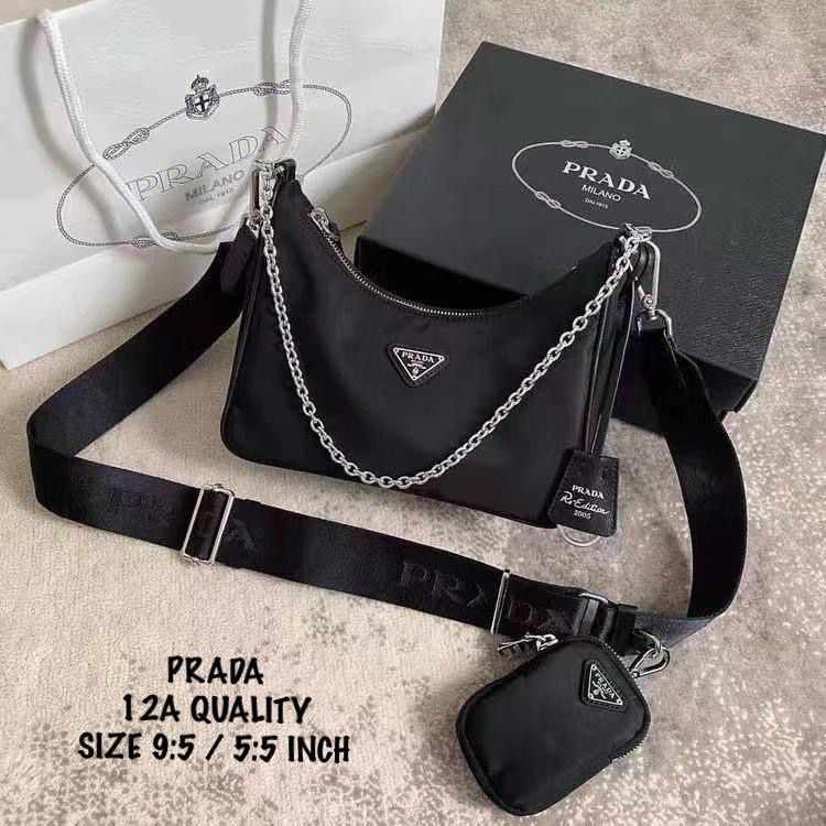 This chic and versatile Prada Nylon Multi Pochette Bag combines functionality with luxury style, perfect for day-to-night wear. Comes complete with original packaging for a premium unboxing experience.