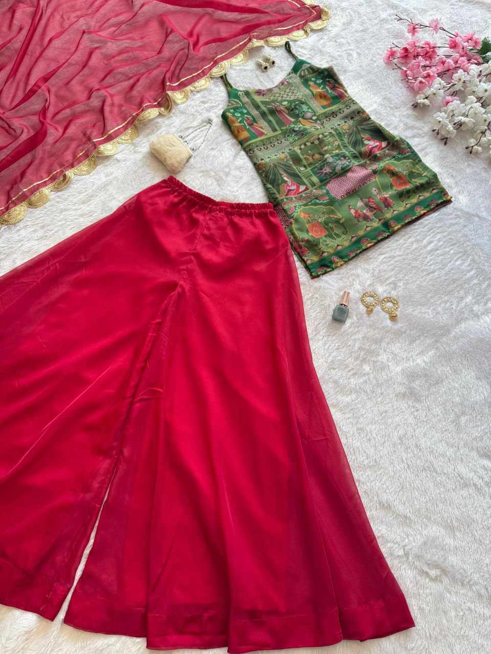 Top – Jimmy Organza digital printed kurta, offering a lightweight and elegant silhouette
